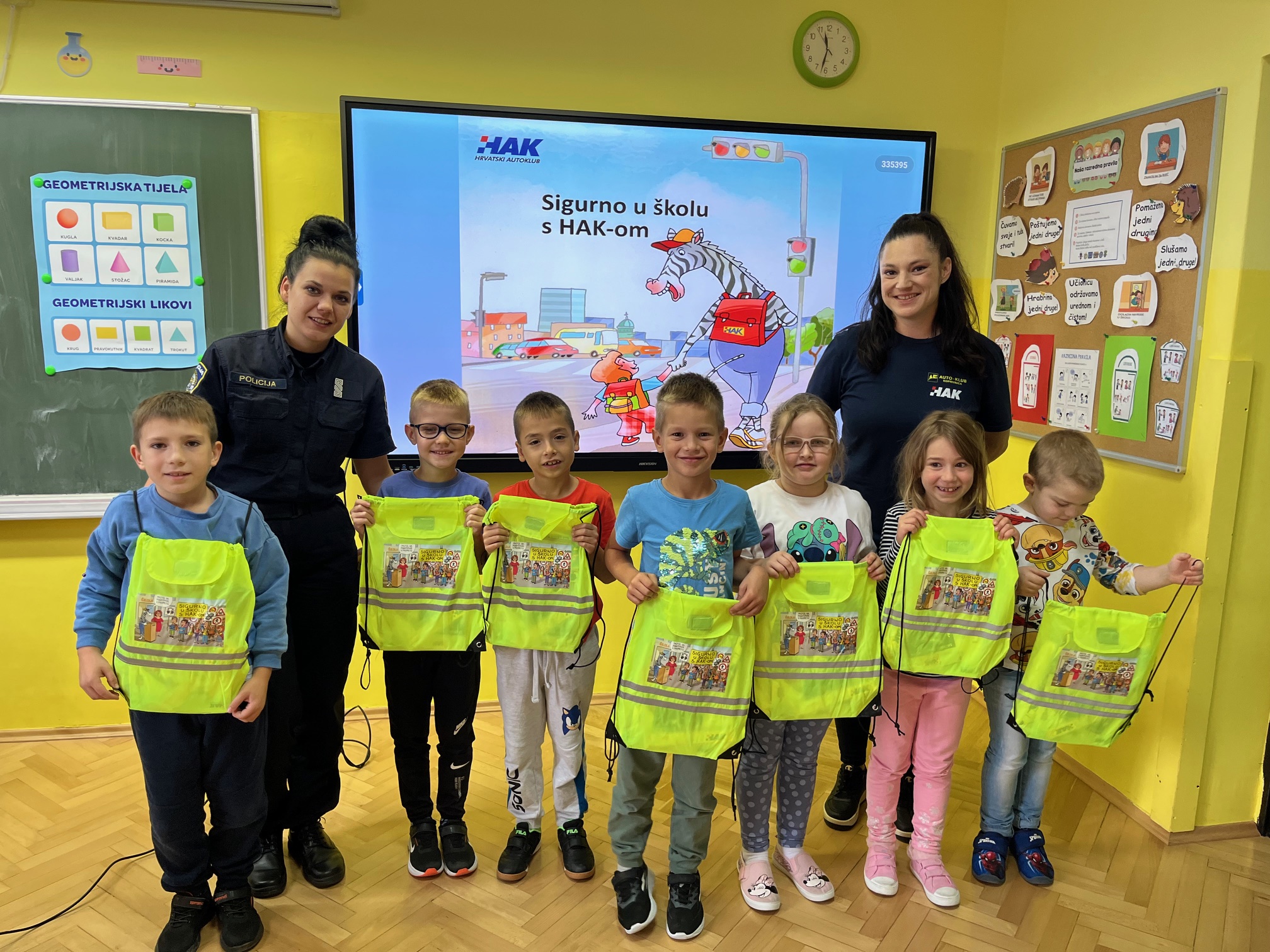 Prometni stručnjaci iz autoškole Auto-kluba Koprivnica i stručnjaci Policijske postaje Koprivnice su u svim prvim razredima osnovnih škola s područja grada Koprivnice i 10 susjednih općina, proveli ovaj preventivni program uz pomoć prigodne prezentacije, te su svim prvašićima uručeni prigodni pokloni: edukativna slikovnica “Sigurno u školu s HAK-om” s osnovnim pravilima kretanja u prometu i ponašanju na prometnicama, prigodna majica kratkih rukava, bojanka, knjižica s naljepnicama za bilježnice i knjige, ravnalo i reflektirajući ruksak. Svaki prvašić dobio je i letke namijenjene njihovim roditeljima i drugim vozačima, s ciljem upozorenja, prije svega vozača, da je s početkom školske godine povećan broj djece na prometnicama.